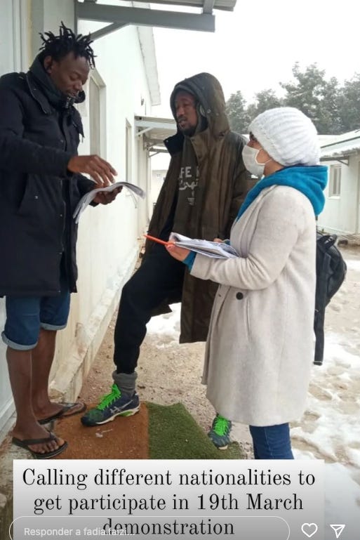 She organised a series of workshops with young people and children from the countryside (Fig. 2), creating a network of affections that later allowed her to approach the community to explain the possibility of collaborating and carrying out protest actions in Athens regarding the emergency situation of other migrants who could not cross the border between Turkey and Greece (Fig. 3). It was about helping family and friends who remained blocked in the forests, exposed to the elements for weeks, losing their lives due to the extreme winter temperatures.